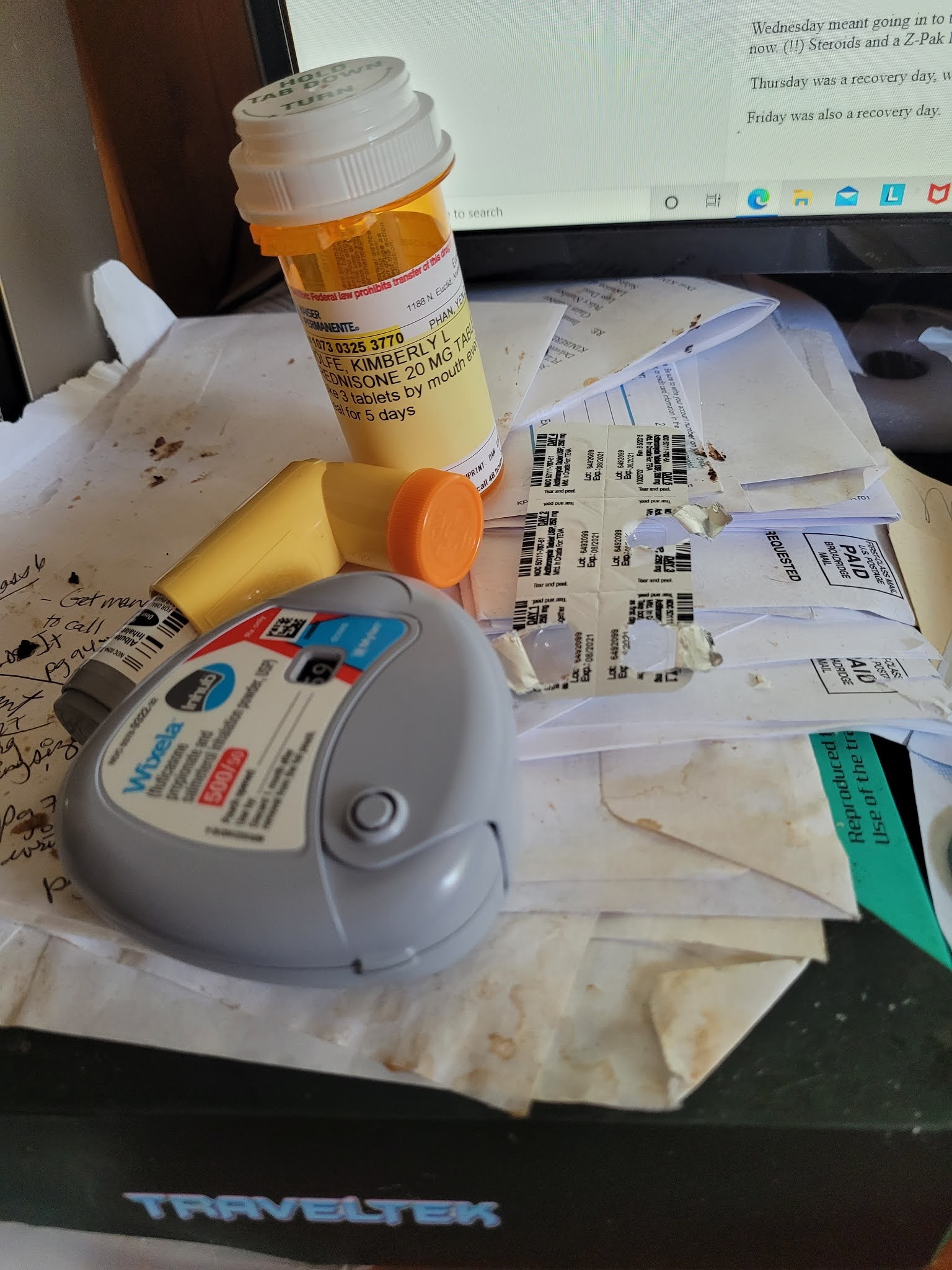 Wednesday meant going in to the doctor's. I apparently have one hell of an asthma attack going on right now. (!!) Steroids and a Z-Pak later and I'm hopefully on the mend.